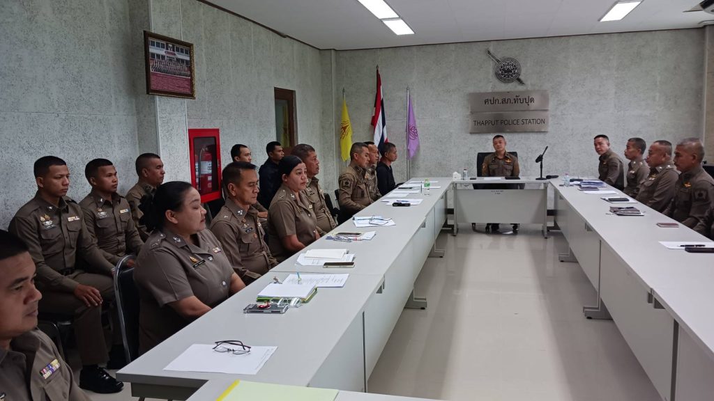 พ.ต.อ.วีรยุทธ สิทธิรัตนกุล ผกก.สภ.ทับปุด กำหนดให้มีการประชุมประจำเดือน มิถุนายน 2568 เพื่อชี้แจงข้อราชการต่างๆให้ข้าราชการตำรวจในสังกัดทราบ ณ ห้องประชุม สภ.ทับปุด โดยมีรายละเอียดข้อสั่งการ ดังนี้