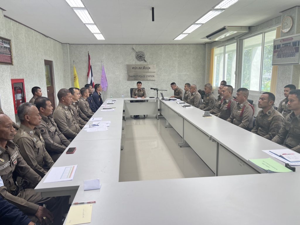 พ.ต.อ.วีรยุทธ สิทธิรัตนกุล ผกก.สภ.ทับปุด กำหนดให้มีการประชุมประจำเดือน เมษายน 2568 เพื่อชี้แจงข้อราชการต่างๆให้ข้าราชการตำรวจในสังกัดทราบ ณ ห้องประชุม สภ.ทับปุด โดยมีรายละเอียดข้อสั่งการ ดังนี้