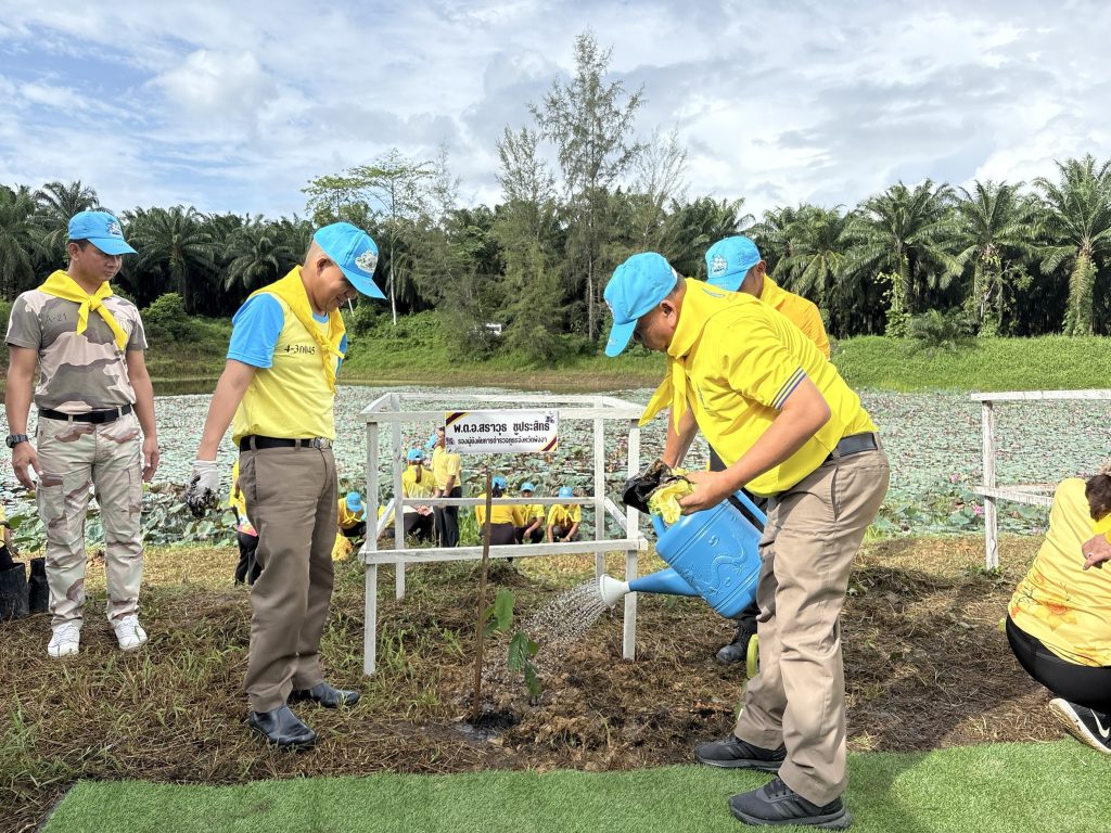 พร้อมด้วย ข้าราชการตำรวจ สภ.ทับปุด ร่วมกิจกรรมจิตอาสาพัฒนาเนื่องในโอกาสวันเฉลิมพระชนมพรรษา สมเด็จพระนางเจ้าสุทิดา พัชรสุธาพิมลลักษณ พระบรมราชินี ณ สระน้ำหนองกก หมู่ที่ 4 ตำบลทับปุด อำเภอทับปุด จังหวัดพังงา