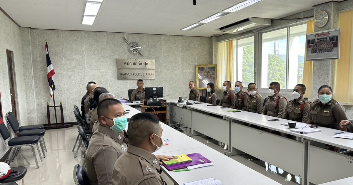 พ.ต.อ.สมบัติ แสวงสุข ผกก.สภ.ทับปุด, พ.ต.ท.โกวิท คงหนู รอง ผกก.ป.สภ.ทับปุด, พ.ต.ท.อนันต์ เกื้อบุญแก้ว รอง ผกก.สอบสวน สภ.ทับปุด ,พ.ต.ท.ประเสริฐ แจ่มใส สว.สส.สภ.ทับปุด, พ.ต.ท.ธีระศักดิ์ ทองรักขาว สวป.สภ.ทับปุด, พ.ต.ท.หญิง ปริมกมล ทองคำ สว.อก.สภ.ทับปุด พร้อมด้วยข้าราชการตำรวจ สภ.ทับปุด ร่วมการประชุมประจำเดือนของหน่วย เดือนมกราคม ณ ห้องประชุมชั้น 3 สภ.ทับปุด โดยมีรายละเอียดการประชุมดังนี้