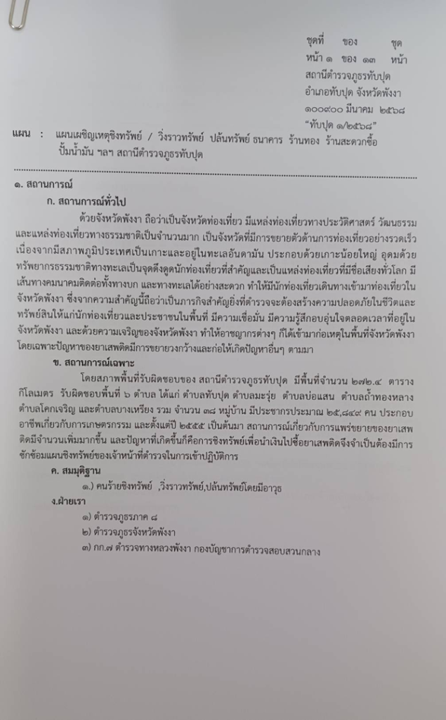 - แผนชิงทรัพย์ ปล้นทรัพย์ ธนาคาร ร้านทอง ร้านสะดวกซื้อ ที่ ทับปุด 1/2568 ลง 11 มี.ค.68