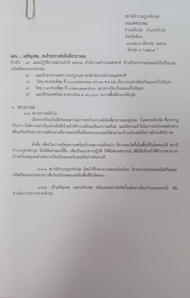 - แผนคนร้ายกราดยิงในที่สาธารณะ ที่ ทับปุด 4/2568 ลง 11 มี.ค.68