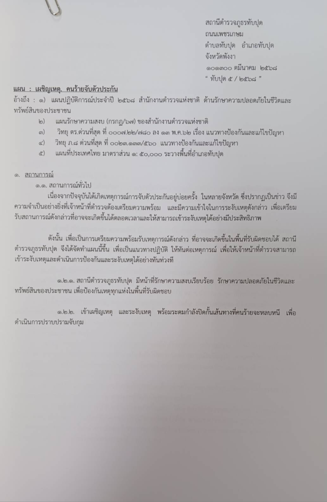 - แผนคนร้ายจับตัวประกัน ที่ ทับปุด 5/2568 ลง 11 มี.ค.68
