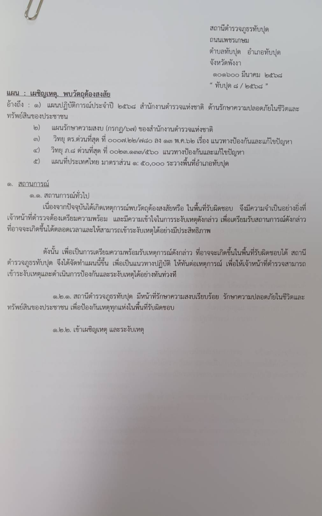 - แผนพบวัตถุต้องสงสัย ที่ ทับปุด 8/2568 ลง 11 มี.ค.68