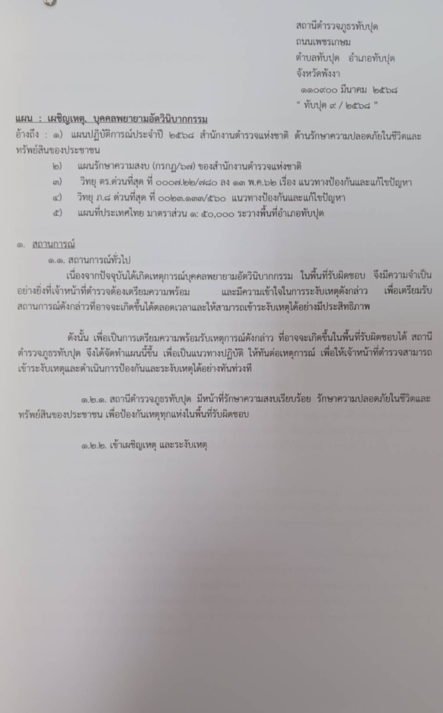 - แผนบุคคลพยายามอัตวิบากกรรม ที่ ทับปุด 9/2568 ลง 11 ต.ค.68