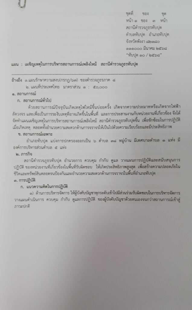 - แผนเพลิงไหม้ ที่ ทับปุด 10/2568 ลง 11 มี.ค.68