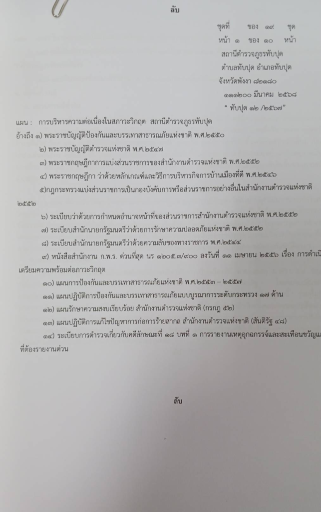 - แผนวิกฤต ที่ ทับปุด 12/2568 ลง 11 มี.ค.68