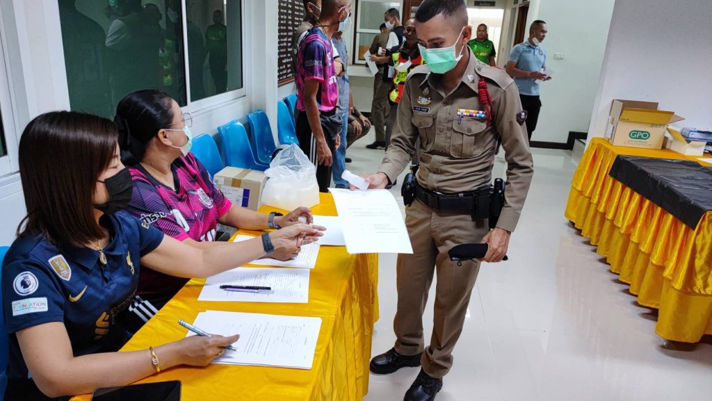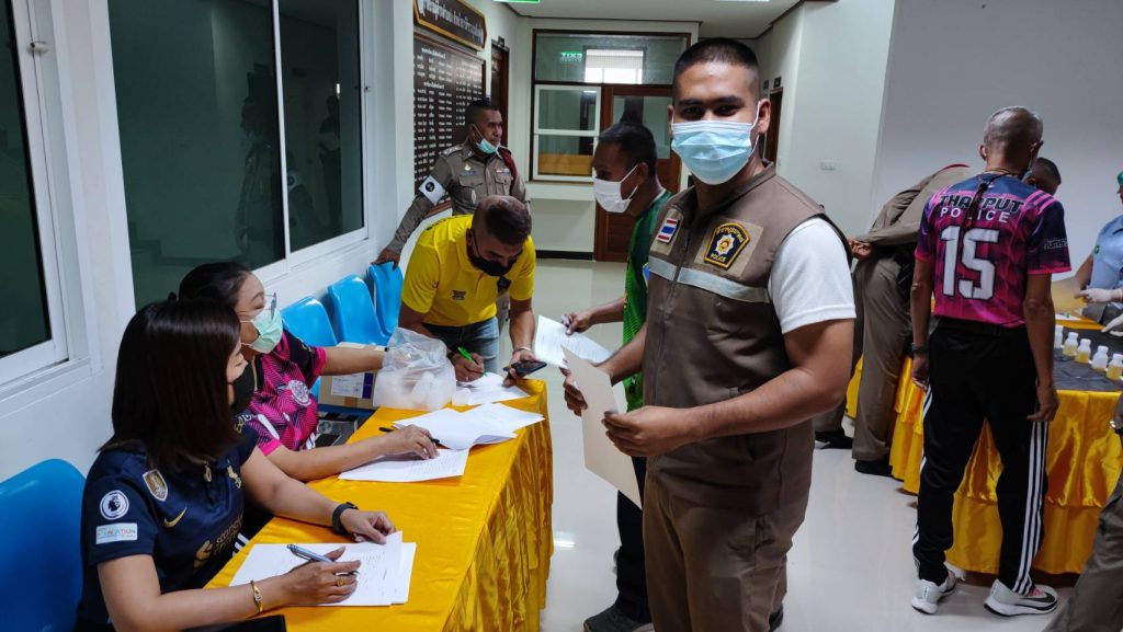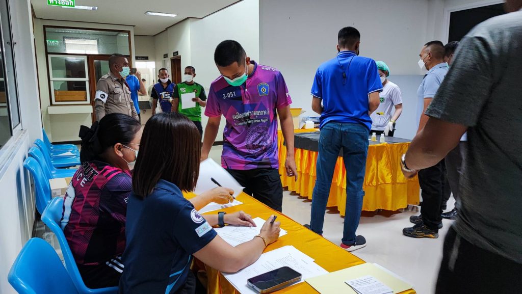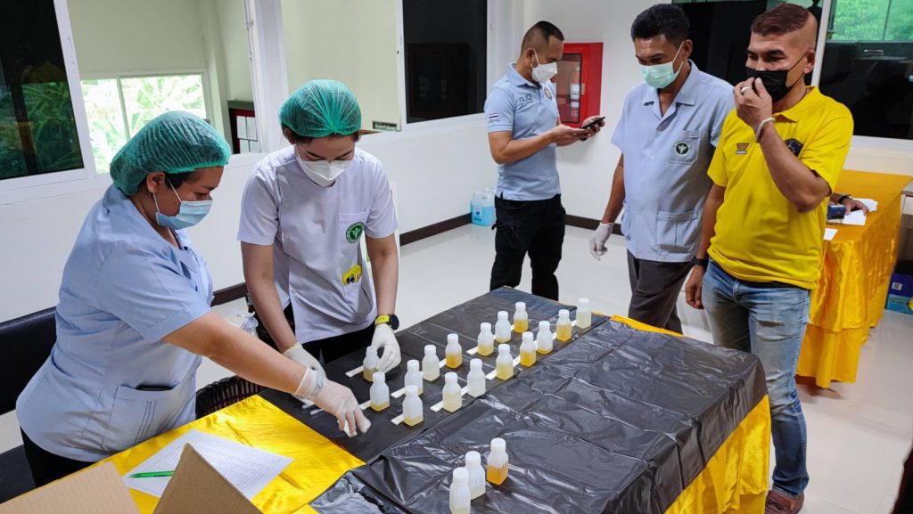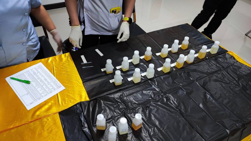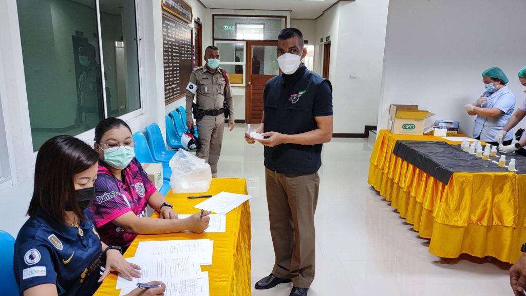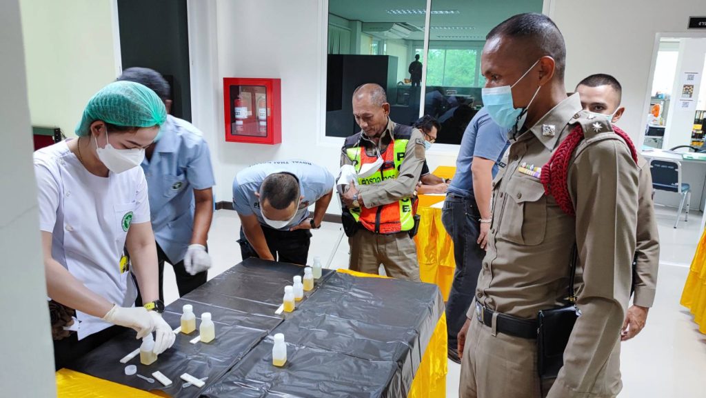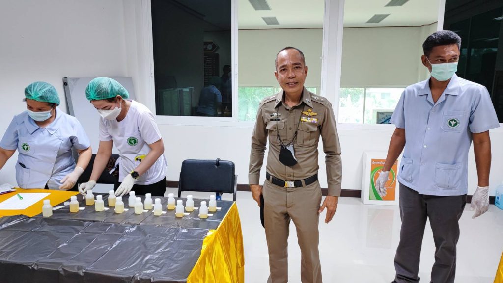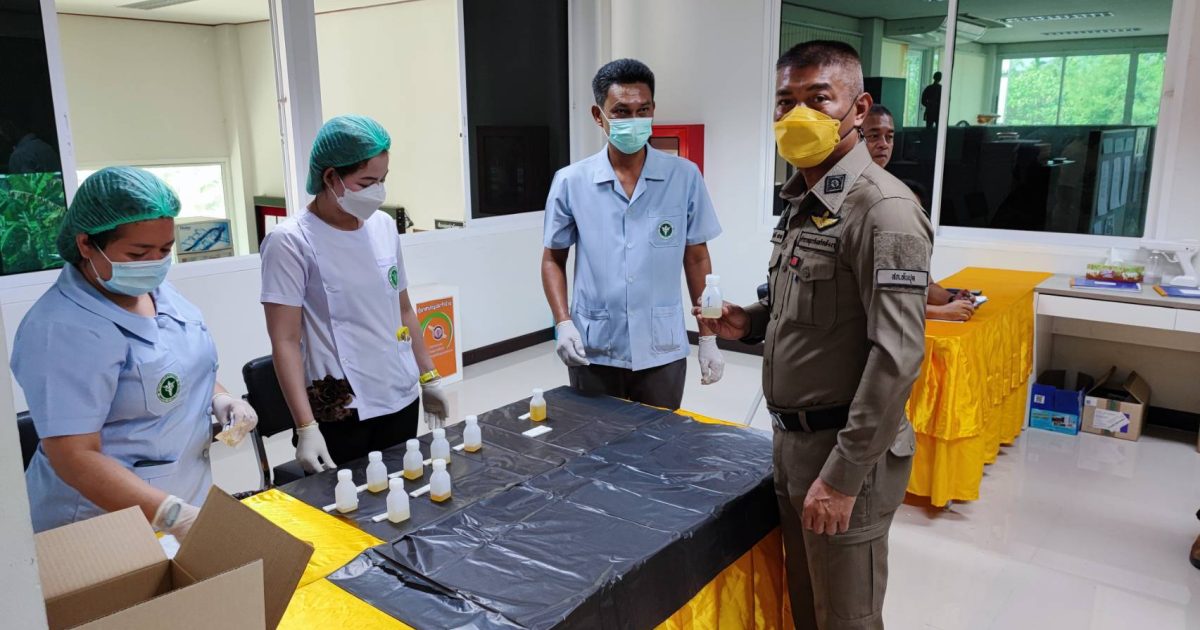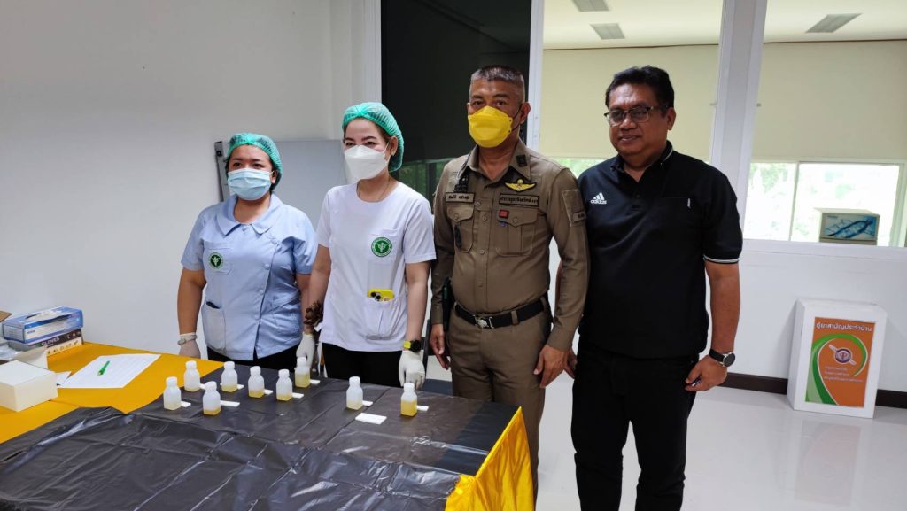 พ.ต.อ.สมบัติ แสวงสุข ผกก.สภ.ทับปุด ได้ขอความร่วมมือไปยังสาธารณสุขอำเภอทับปุด ขอกำลังเจ้าหน้าที่สาธารณะสุข เพื่อตรวจหาสารเสพติดในปัสสาวะของข้าราชการตำรวจ สภ.ทับปุด ทุกนาย