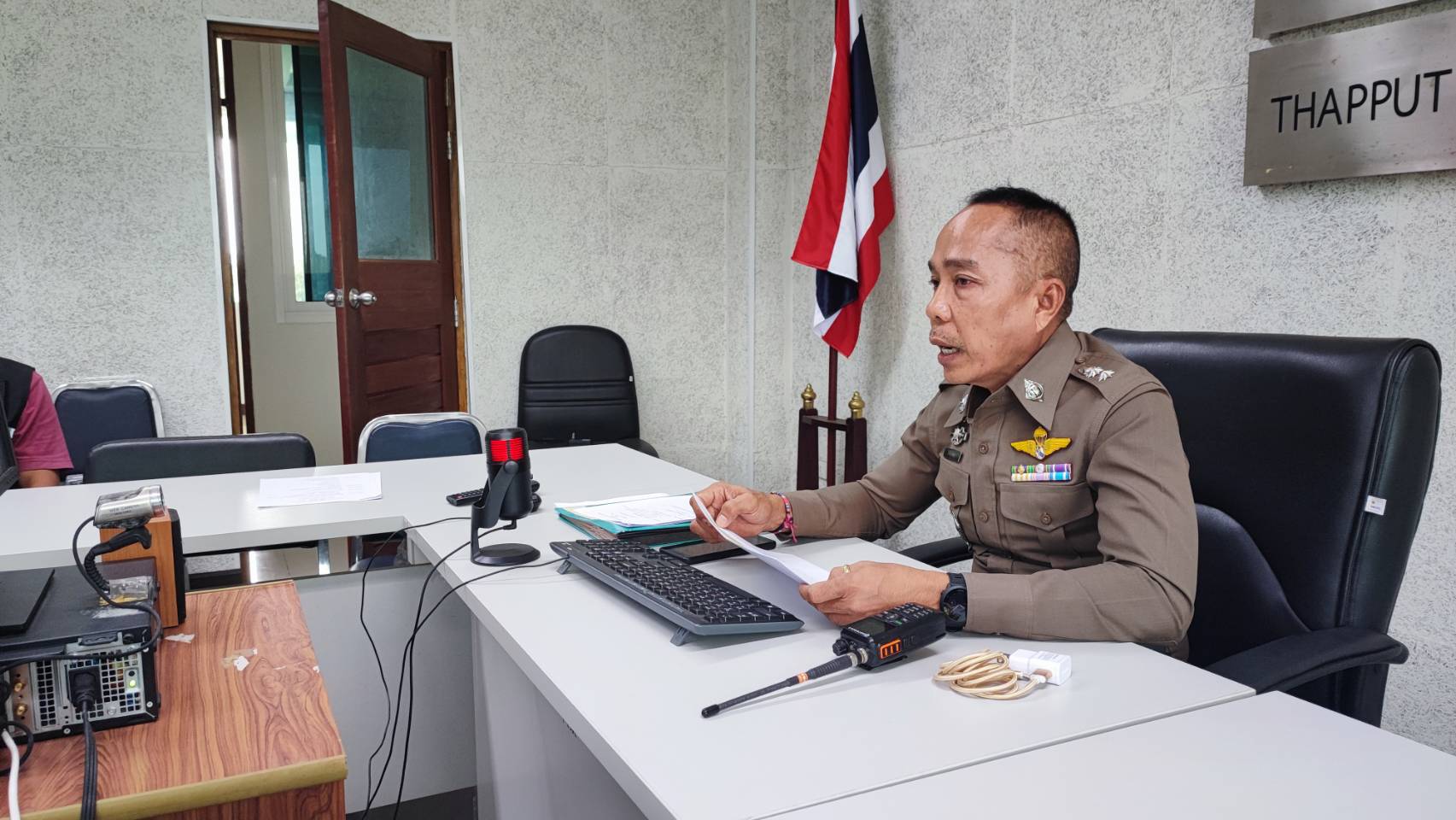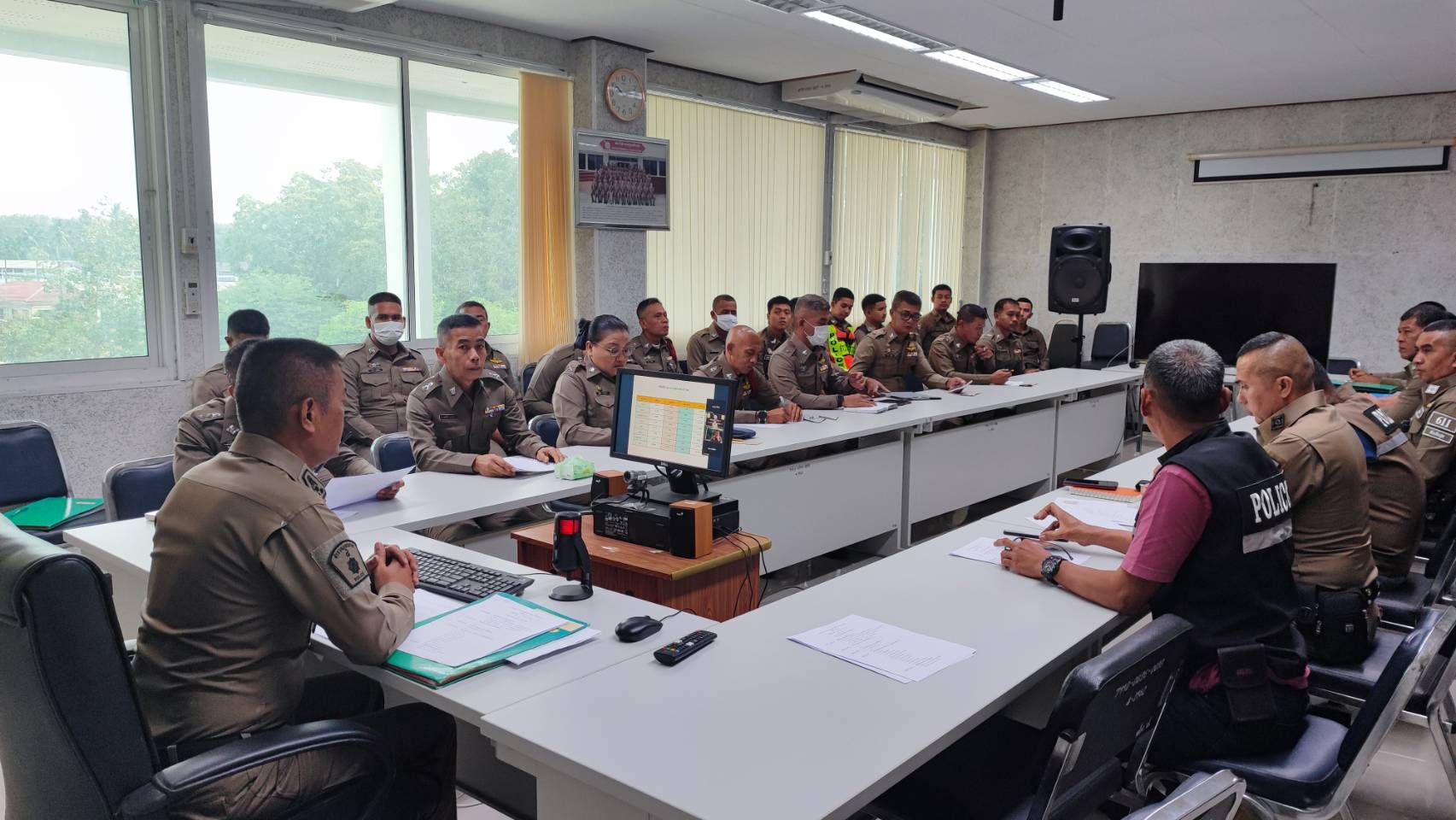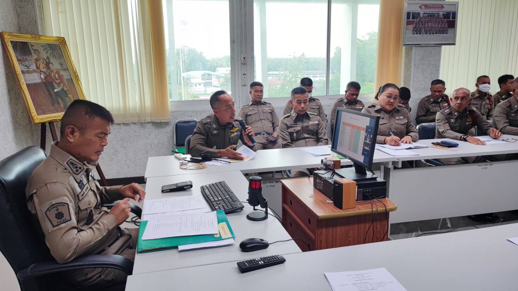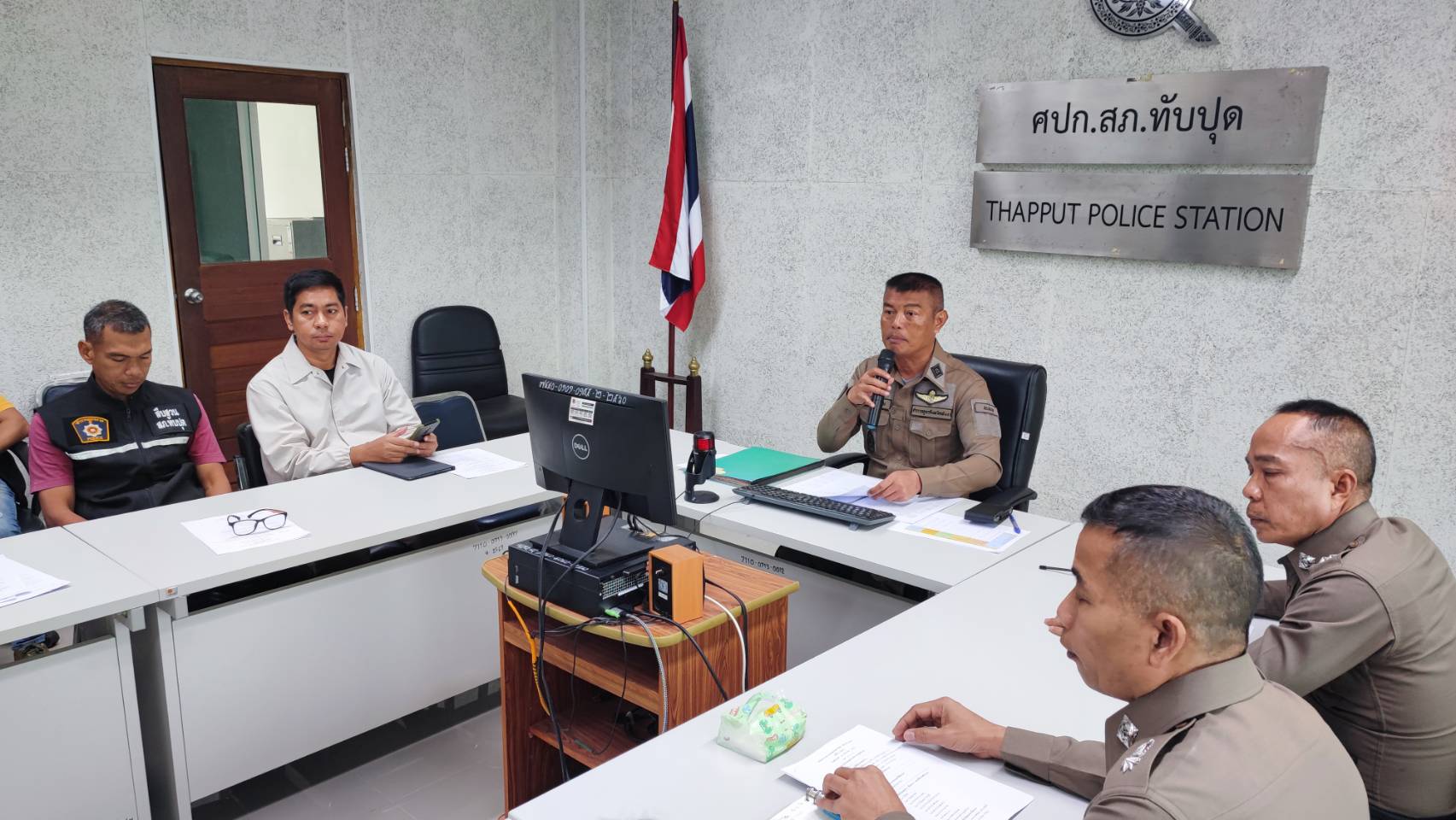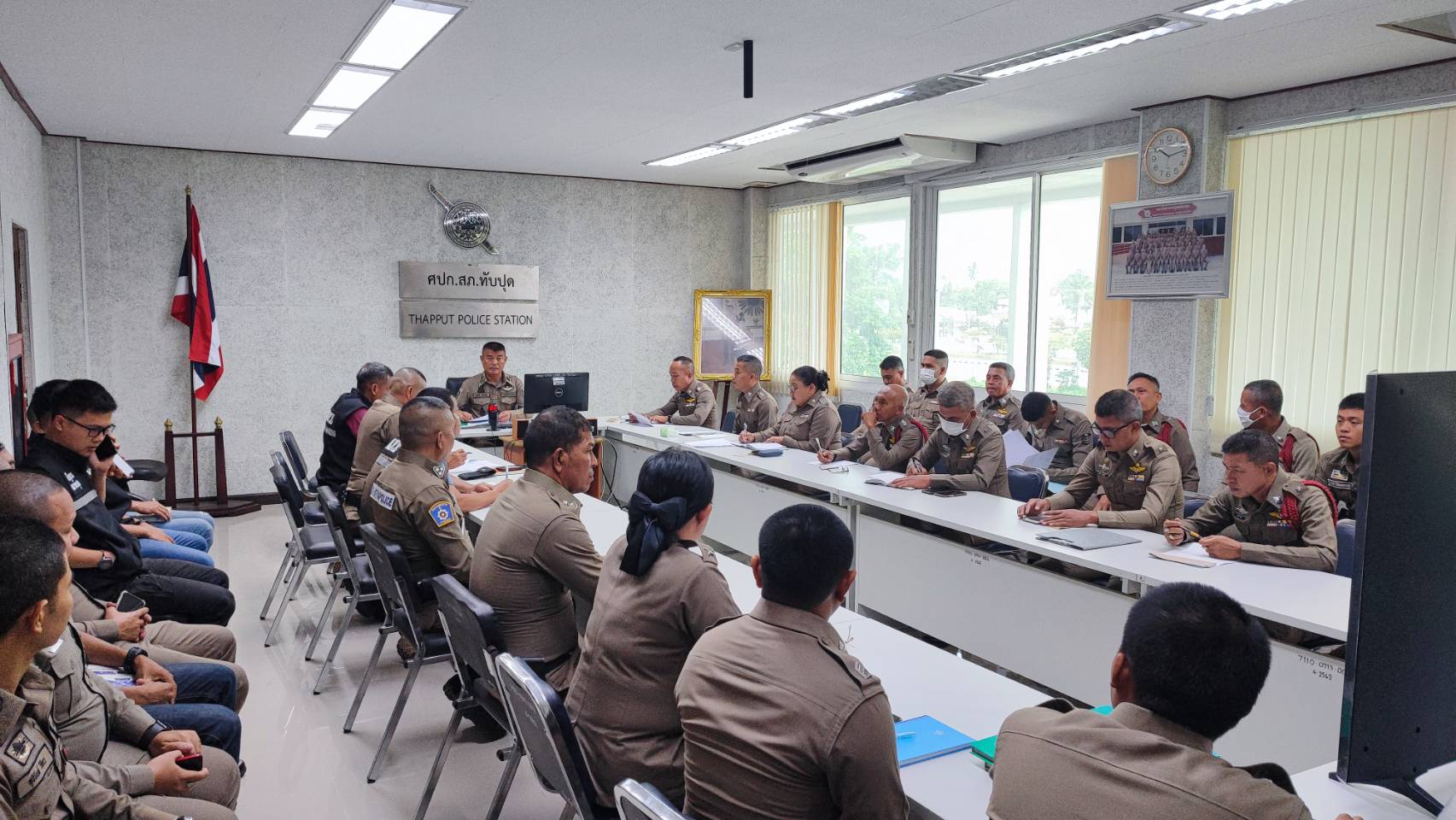 พ.ต.อ.สมบัติ แสวงสุข ผกก.สภ.ทับปุด ,พ.ต.ท.ยศพัฒน์ สุวรรณสิทธิ์ รอง ผกก.สอบสวน สภ.ทับปุด , พ.ต.ท.โกวิท คงหนู รอง ผกก.ป. สภ.ทับปุด , พ.ต.ท.นโรดม คิดถูก รอง ผกก.สส. สภ.ทับปุด ,พ.ต.ท.ประเสริฐ แจ่มใส สว.สส.สภ.ทับปุด, พ.ต.ท.ธีระศักดิ์ ทองรักขาว สวป.สภ.ทับปุด, ว่าที่ พ.ต.ต.สุรสิทธิ์ ขุนทอง สว.อก.สภ.ทับปุด,ว่าที่ พ.ต.ต.ภูริชญ์ สุภาพ สว.สอบสวน สภ.ทับปุด พร้อมด้วยข้าราชการตำรวจ สภ.ทับปุด ร่วมการประชุมประจำเดือนของหน่วย ประจำเดือนเมษายน ณ ห้องประชุมชั้น 3 สภ.ทับปุด โดยมีรายละเอียดการประชุมดังนี้