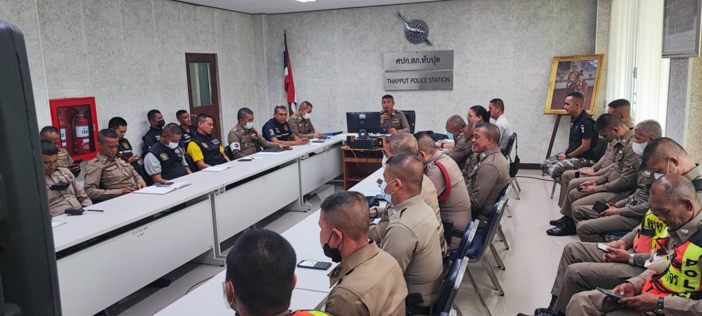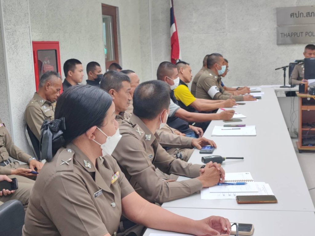 พ.ต.อ.สมบัติ แสวงสุข ผกก.สภ.ทับปุด, พ.ต.ท.นโรดม คิดถูก รอง ผกก.สส. สภ.ทับปุด ,พ.ต.ท.ประเสริฐ แจ่มใส สว.สส.สภ.ทับปุด, พ.ต.ท.ธีระศักดิ์ ทองรักขาว สวป.สภ.ทับปุด, พร้อมด้วยข้าราชการตำรวจ สภ.ทับปุด ร่วมการประชุมประจำเดือนของหน่วย ประจำเดือนเมษายน ณ ห้องประชุมชั้น 3 สภ.ทับปุด โดยมีรายละเอียดการประชุมดังนี้