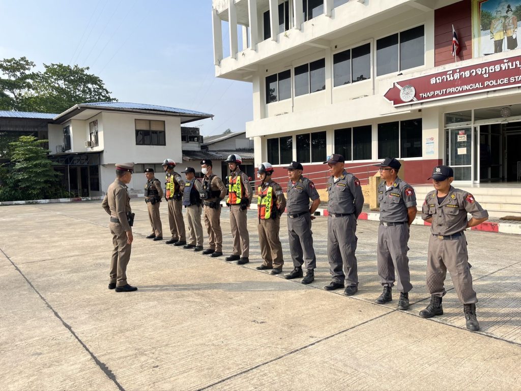 ได้เรียกแถว สายตรวจรถยนต์ สายตรวจจราจร อส.ตร. บริเวณหน้า สภ.ทับปุด ตรวจความพร้อมก่อน ออกปฎิบัติหน้าที่