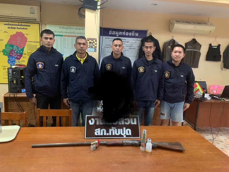 ได้มีการจับกุมตัวผู้ต้องหา พร้อมของกลางอาวุธปืนลูกซองยาว ขนาด 12 ไม่ปรากฏยี่ห้อ เครื่องหมายทะเบียน และหมายเลขประจำปืน จำนวน 1 กระบอก, เครื่องกระสุนปืนลูกซอง ขนาด 12 จำนวน 4 นัด โดยกล่าวหาว่า “มีอาวุธปืนและเครื่องกระสุนปืนไว้ในครอบครองโดยไม่ได้รับอนุญาต, เสพยาเสพติดให้โทษประเภท 1(เมทแอมเฟตามีน) โดยไม่ได้รับอนุญาต” เหตุเกิดที่ หมู่ 8 ต.โคกเจริญ อ.ทับปุด จว.พังงา