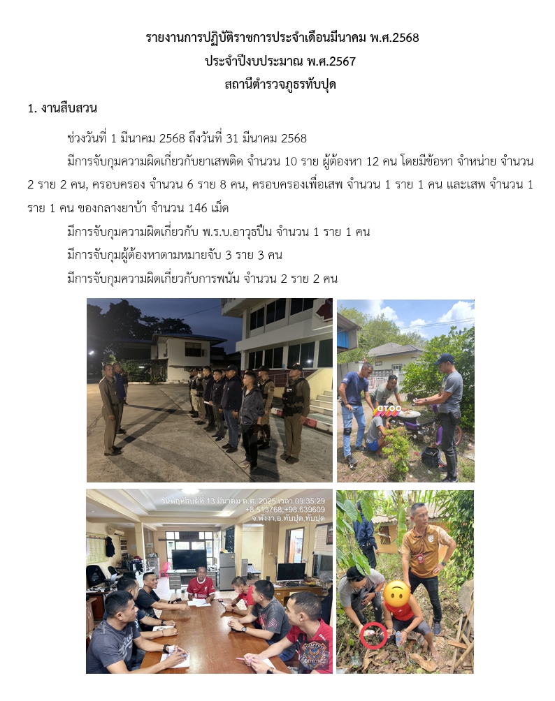 รายงานการปฏิบัติราชการประจำเดือนมีนาคม พ.ศ.2568