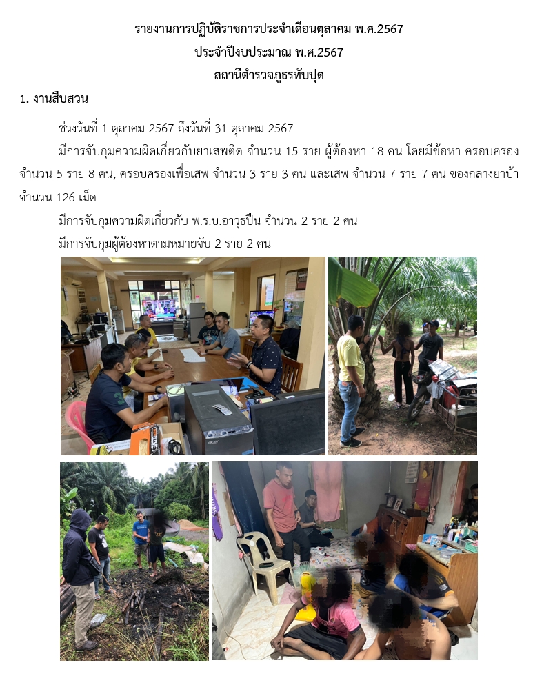 รายงานการปฏิบัติราชการประจำเดือนตุลาคม พ.ศ.2567