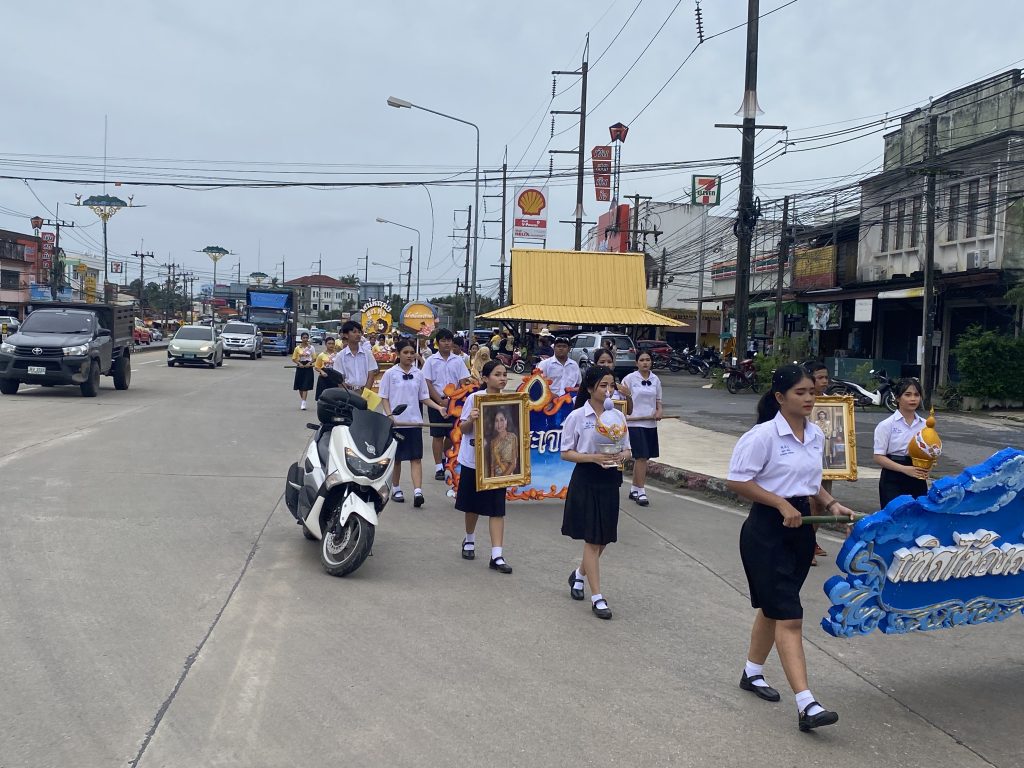 (.)สายตรวจรถยนต์ พร้อมข่ายจราจร อำนวยความสะดวกด้านการจราจรให้แก่ขบวนพาเหรดกีฬาสีคณะครูนักเรียนโรงเรียนทับปุดวิทยา