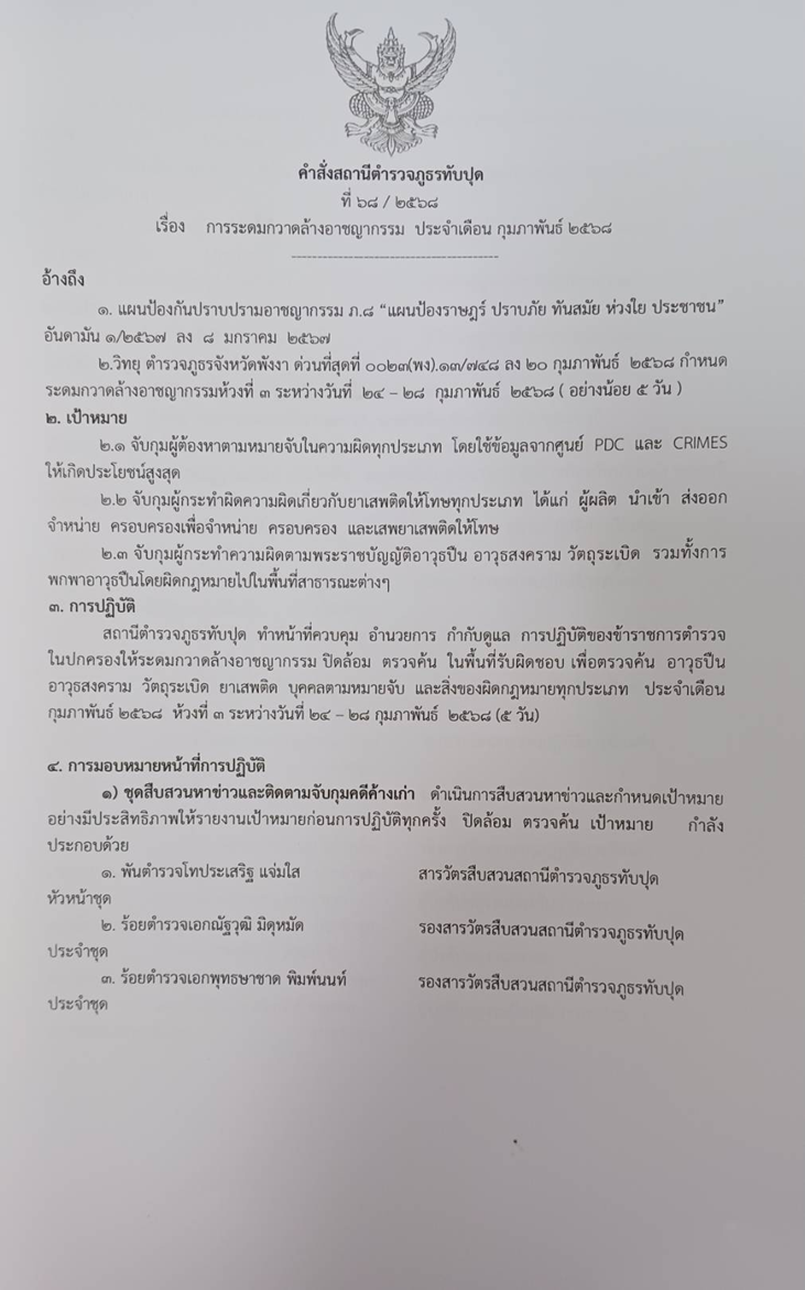 สภ.ทับปุด ภ.จว.พังงาเมื่อวันที่ 1 เม.ย.68 เวลาประมาณ 10.00 น. พ.ต.อ.วีรยุทธ สิทธิรัตนกุล ผกก.สภ.ทับป